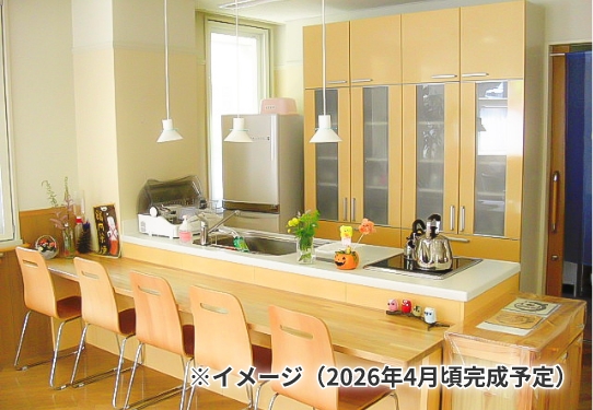共用施設浴室(一般浴槽、要介護者用機械浴槽)、ファミリーキッチン、家族室、ラウンジ