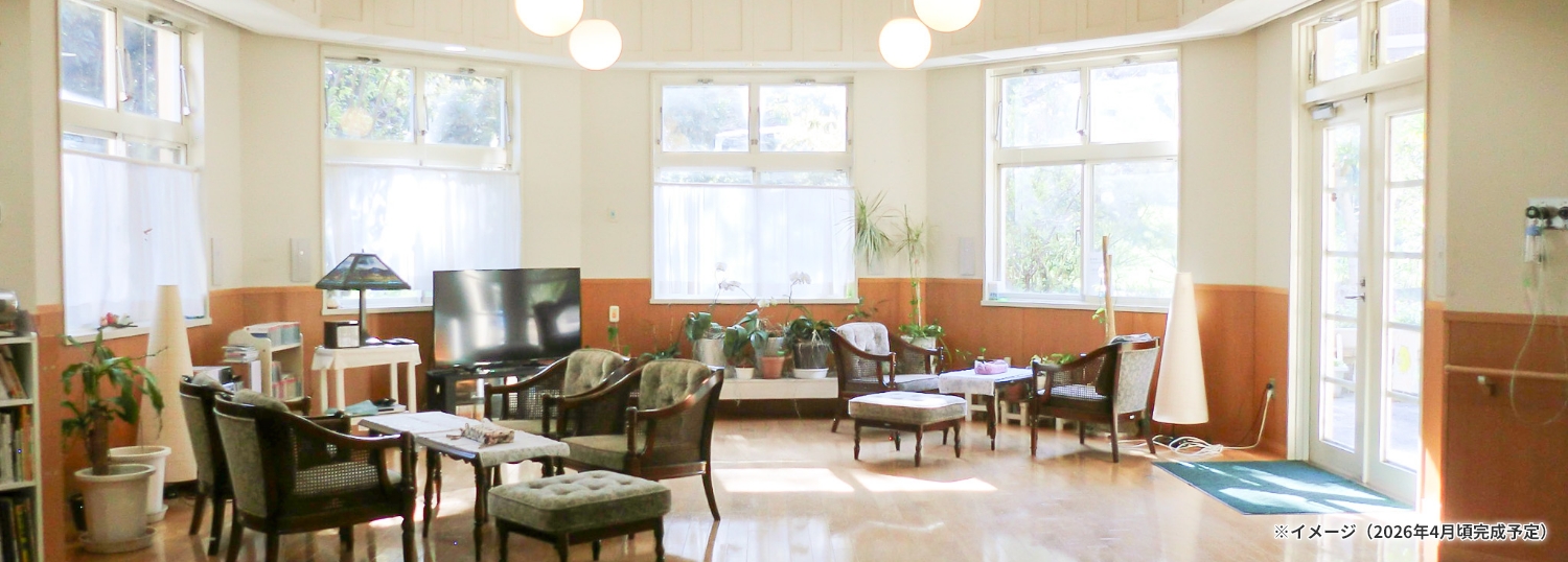 共用施設浴室(一般浴槽、要介護者用機械浴槽)、ファミリーキッチン、家族室、ラウンジ